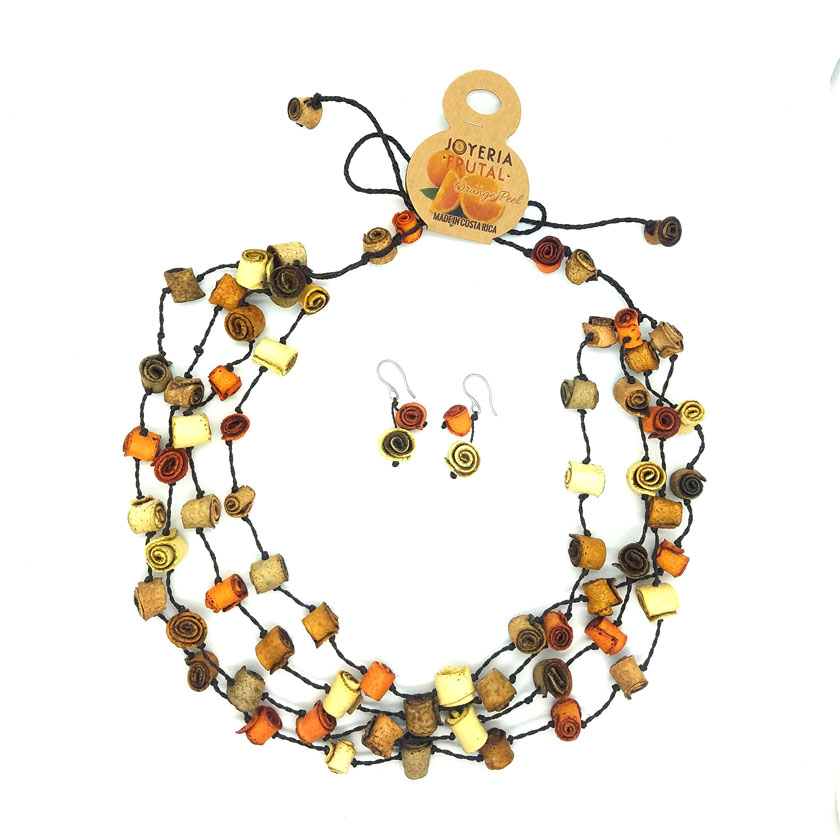 Collar rollitos de naranja y aretes – multicolor tierra