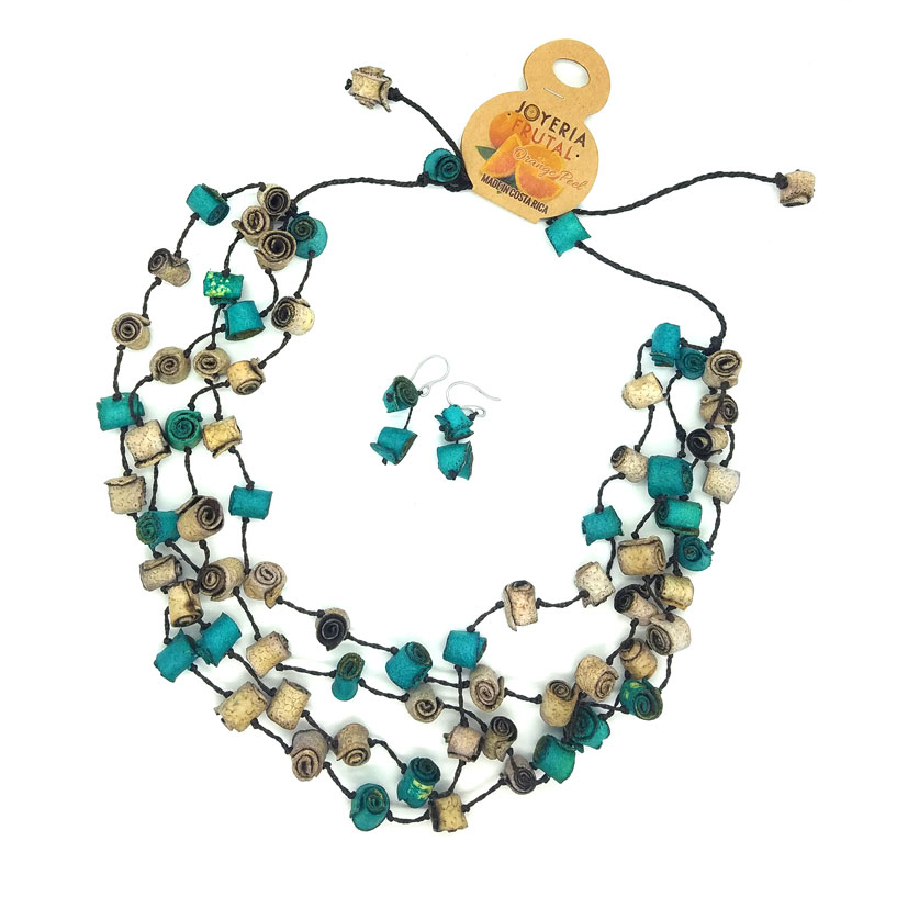 Collar rollitos de naranja y aretes – multicolor turqueza